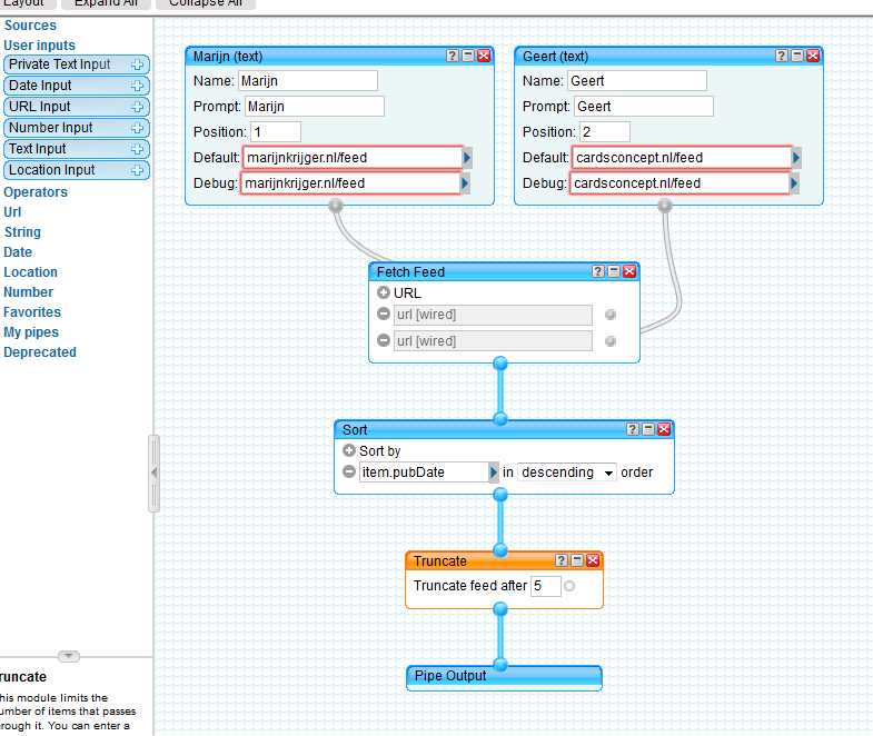 rst de twee feeds bijelkaar gezet, en vervolgens deze aflopend op datum gesorteerd. En tot slot hebben we het aantal blogs gemaximeerd op 10. Hiermee zijn twee RSS-feeds teruggebracht naar een RSS-feed. Yahoo genereert vervolgens een script en dit hebben we geëmbed op het M&G-blog.