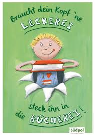 De winnende poster is “Braucht dein Kopf ‘ne Leckerei, steck ihn in die Bücherei”.