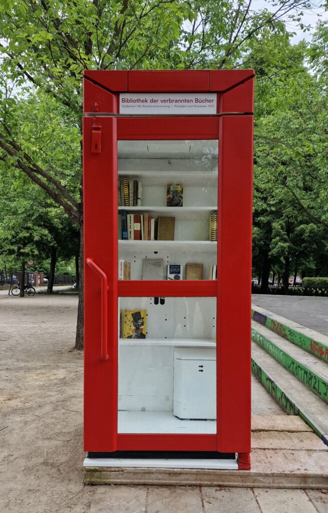 De Bibliothek der verbrannten Bücher (Bibliotheek van de verbrande boeken) presenteert de Duitstalige literatuur, die in het nationaalsocialistische Duitsland was. Het zijn boeken van auteurs die op zwarte lijsten stonden en die op 10 mei 1933 publiekelijk verbrand werden in meer dan 20 Duitse universiteitssteden.