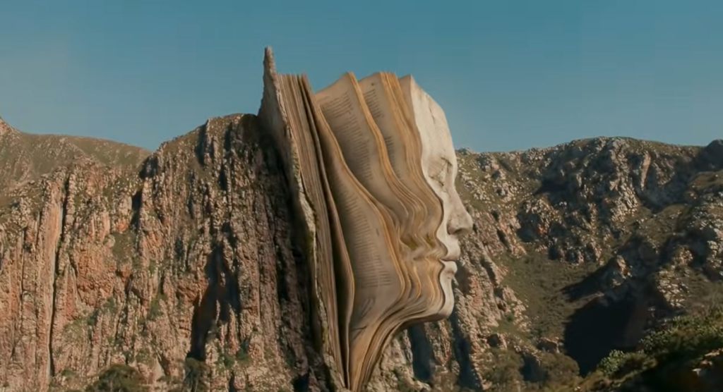 De wereld in deze reclame is opgebouwd uit boeken. Elke bocht in de weg, elk landschap, standbeelden, bruggen zijn gemaakt van pagina’s, verhalen en herinneringen. Als een bibliotheek in de open lucht, waar elke weg leidt naar iets om te ontdekken, te vertellen of zelf te schrijven.
