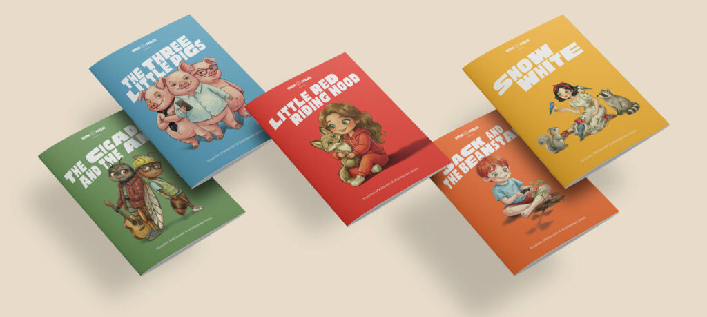Dat is precies de gedachte achter Green Fables, een nieuw kinderboeken-project van het Braziliaanse creatieve studio Feito. De reeks hervertelt bekende sprookjes en fabels, van Roodkapje tot Sneeuwwitje, van De Mier en de Krekel tot Hans en de Bonenstaak, met een eigentijdse draai rond milieu en klimaat.