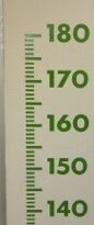 We zijn bij een winkel waar ze bijna alles verkopen. Ook kleding is in het assortiment opgenomen. Bij de kledingafdeling hangt een meetlat met de tabel voor de kledingmaten.